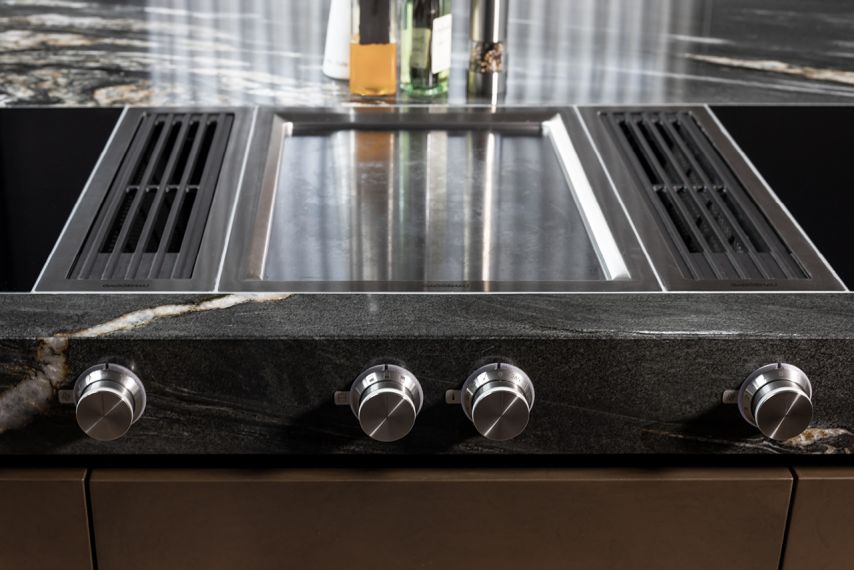 De Essential Induction is de ultieme keuze voor wie van minimalisme houdt. Slechts een LED-punt, een werkblad en een draaiknop zijn zichtbaar. De inductiemodule wordt volledig geïntegreerd onder een op maat gemaakt Dekton werkblad.